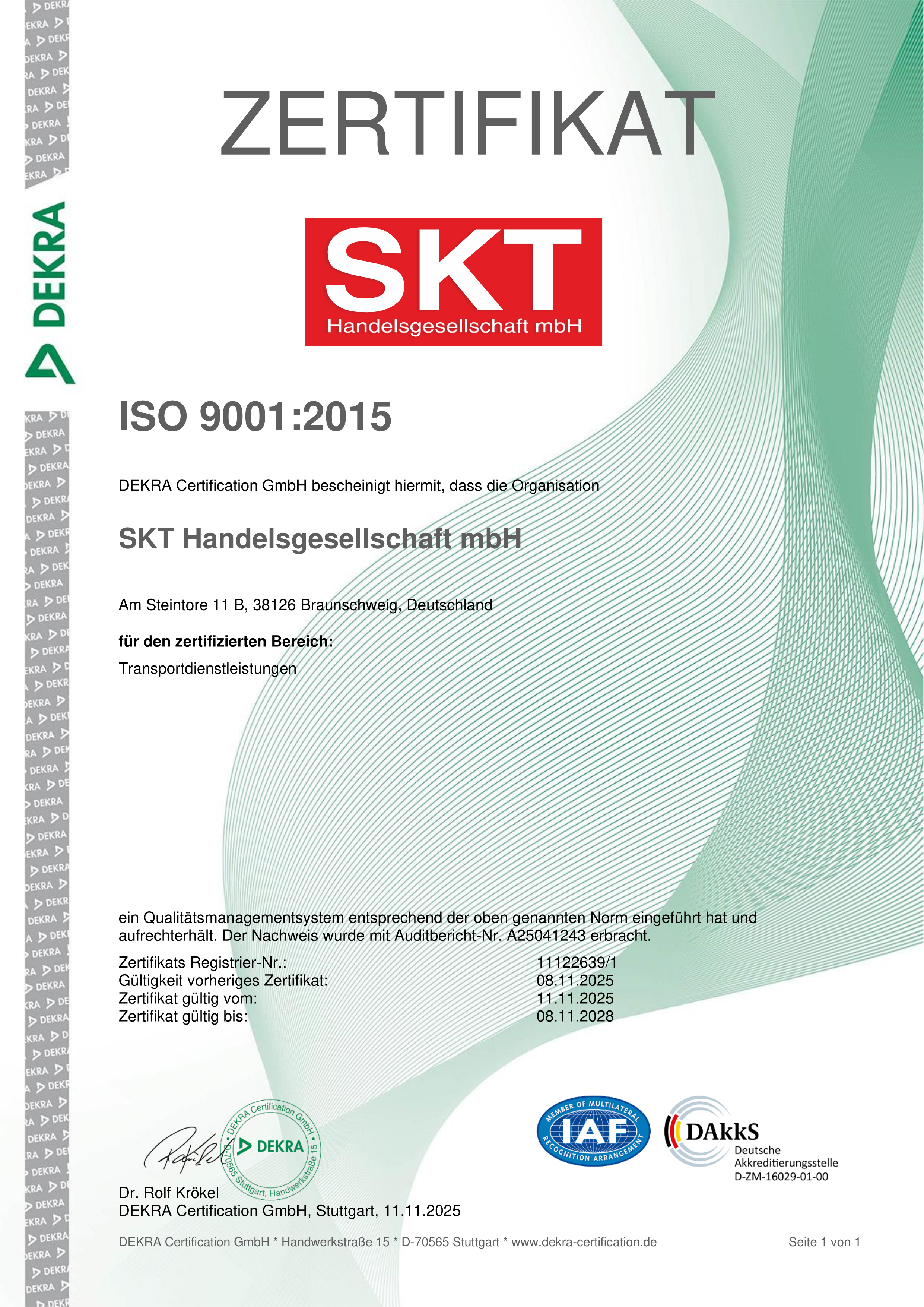 - Gefahrgut (ADR) ist für uns, da alle LKW ausgestattet und die Fahrer geschult sind, kein Problem! - Auch Transporte von Abfällen nach § 53 KrWG ist für uns keine Herausforderung. - Selbstverständlich sind wir auch nach der ISO 9001:2015 zertifiziert, die regelmäßig von der DEKRA auditiert wird.